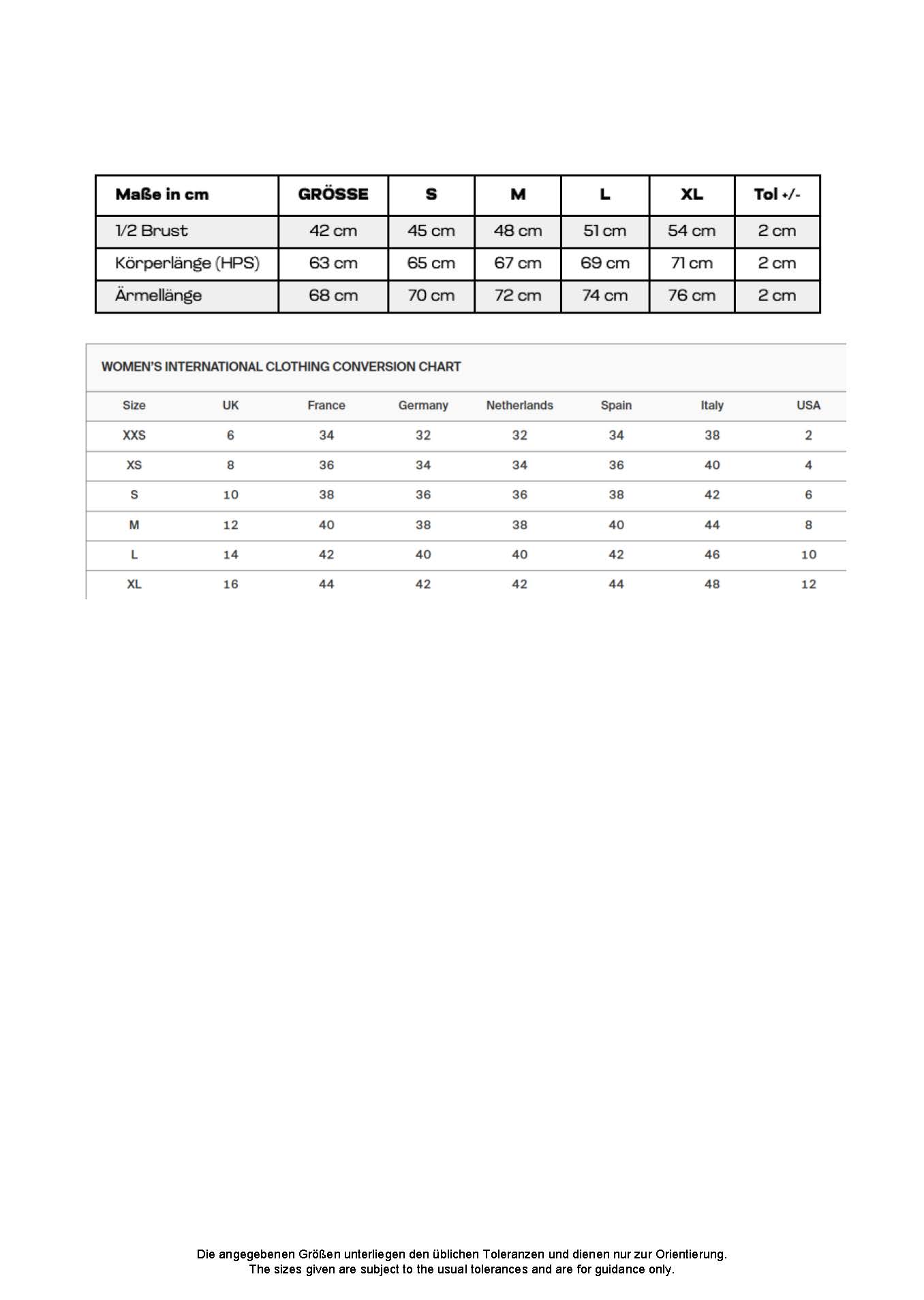 • Größentabelle