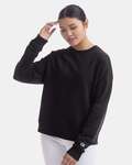 CHMPN LDY 9OZ 50/50 CREW Embroidered Champion “C” logo at left cuff 9 oz. 2x1 rib spandex at collar, cuffs and waistband Double-needle stitching throughout 50% Cotton/50% Polyester PowerBlend S-2XL Imported
