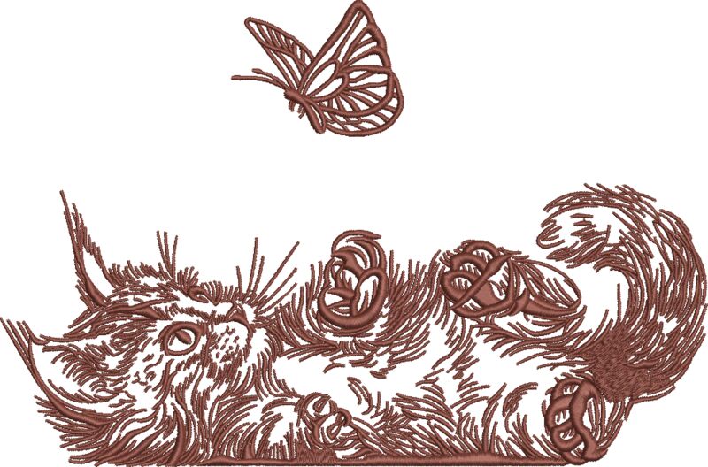 Katze spielt mit Schmetterling 17 x 25 cm Braun